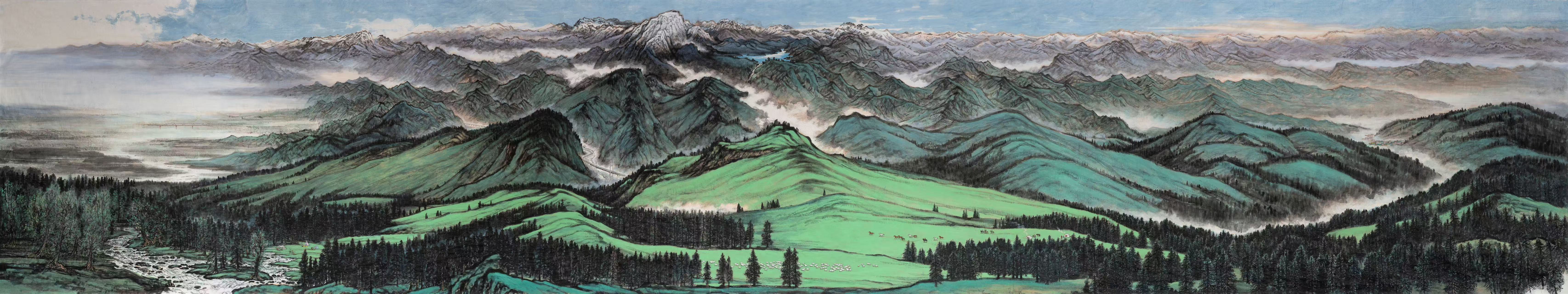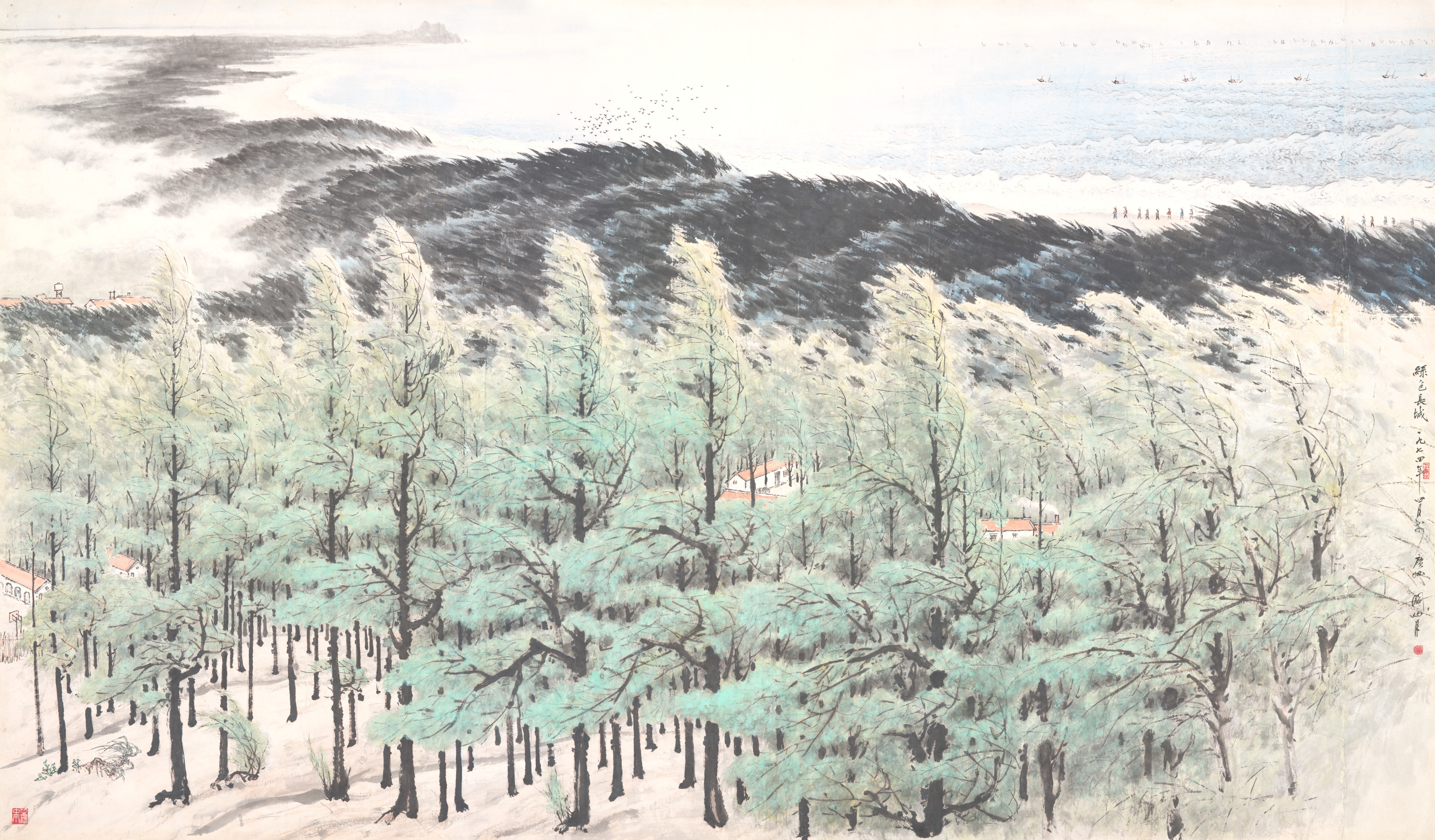关山月《绿色长城》 1974年 中国画 232×396cm 中国好意思术馆藏